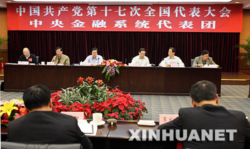 10月15日,參加中國共產黨第十七次全國代表大會的中央金融系統代表團分組討論十七大報告。