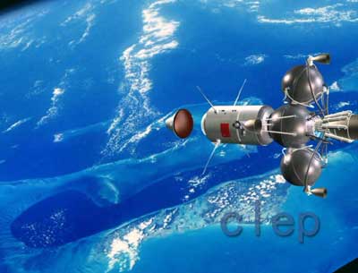 太空美術(shù)──月球自動(dòng)采樣返回探測(cè)器返回艙攜帶月球樣品飛臨地球上空.