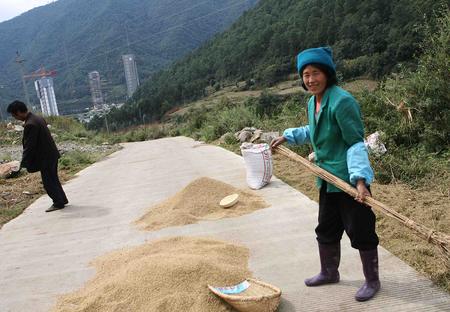西昌衛星發射中心周圍的村民依然生活井井有條,村民在收獲田里的稻谷。