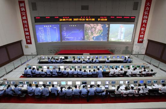 10月24日,嫦娥一號衛(wèi)星發(fā)射進(jìn)入“倒計時”,北京航天飛行控制中心在進(jìn)行發(fā)射前的準(zhǔn)備。