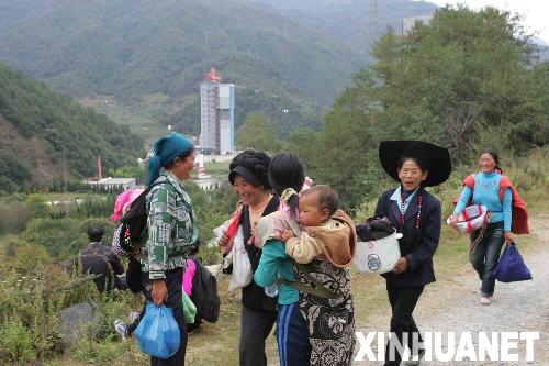 10月24日,幾名那基村村民從發射場附近撤離。嫦娥一號衛星進入發射前的最后準備,預計10月24日18時05分發射。西昌衛星發射中心周圍和火箭彈道下方的數千民眾有序撤離。新華社記者李剛攝