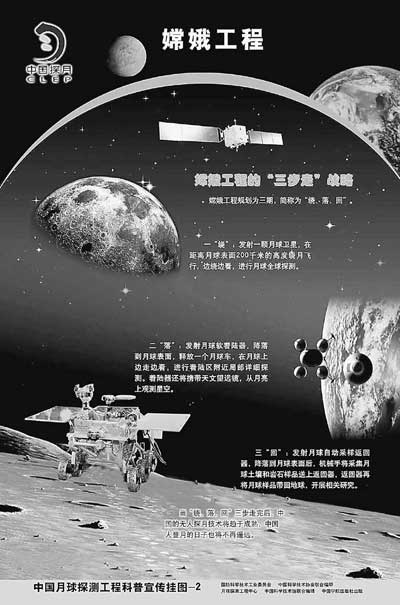 繞月探測工程(嫦娥工程)是一個完全自主創新的工程,也是我國實施的第一次發射探測器進行探月,整個過程分為“三步走”。
