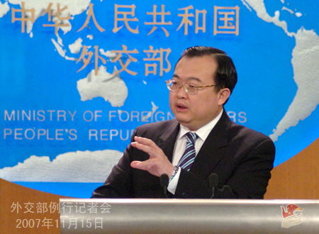 中國日報網環球在線消息:2007年11月15日,外交部發言人劉建超舉行例行記者會,就楊潔篪外長訪問伊朗和阿富汗、中日東海問題磋商、墨西哥外長訪華等問題答記者問。