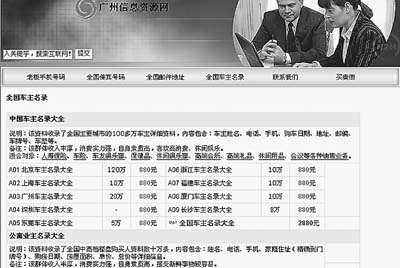 讓人更為吃驚的還在后面。在中國股民名單網的首頁上方位置,網站管理方“精心”地對搜集到的所有資料進行了詳細分類,類別五花八門,包括中國股民名單、全國老板手機號碼、業主名單、全國車主名單、中國傳真號碼、中國企業名錄、特色名錄、高端客戶名單等。