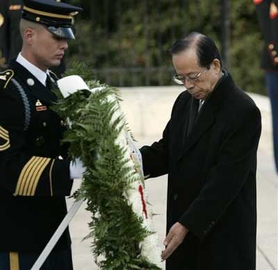 日本首相福田在美國阿靈頓國家公墓獻花圈。