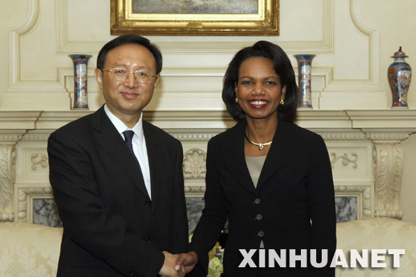 中國日報網環球在線消息:中國外交部長楊潔篪11月26日在美國首都華盛頓會見了美國國務卿賴斯。