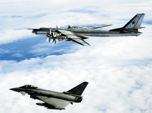 俄羅斯在決定暫停執(zhí)行《歐洲常規(guī)武裝力量條約》以及與其相關(guān)的國(guó)際協(xié)議后,于8月17日恢復(fù)了已經(jīng)中斷15年的戰(zhàn)略轟炸機(jī)例行空中巡邏。圖為英國(guó)皇家空軍“臺(tái)風(fēng)”戰(zhàn)斗機(jī)當(dāng)日緊急出動(dòng),在北大西洋上空攔截俄羅斯戰(zhàn)略轟炸機(jī)