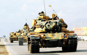 10月17日,土耳其議會(huì)通過(guò)了政府提交的采取越境軍事行動(dòng)打擊活躍在伊拉克北部的庫(kù)爾德工人黨武裝的動(dòng)議。圖為12月18日,土耳其軍隊(duì)的坦克在駛向伊拉克北部,打擊盤(pán)踞在那里的土耳其庫(kù)爾德工人黨武裝。