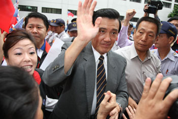 許多支持民眾為二審出庭的馬英九加油打氣。(資料圖片)