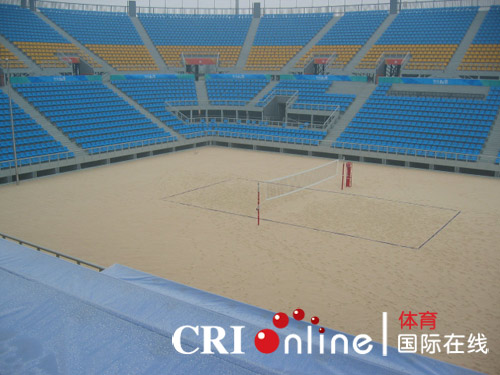 目前,1.7萬(wàn)噸沙子已經(jīng)全部運(yùn)入場(chǎng)館,主比賽場(chǎng)等8塊場(chǎng)地鋪設(shè)完畢。供電線路,賽場(chǎng)周邊配套設(shè)施都將于8月8日前完成。