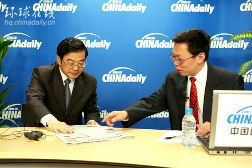 湖南省省長周強2008年3月11日接受中國日報網站副總編輯趙煥新的采訪
