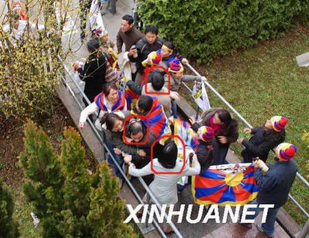 3月17日,“藏獨(dú)”分子暴力沖擊中國(guó)駐德國(guó)慕尼黑總領(lǐng)館,用瓶罐、樹棍等粗暴圍攻領(lǐng)館工作人員(紅圈標(biāo)注為領(lǐng)館工作人員)。3月10日以來,中國(guó)駐美國(guó)、英國(guó)、法國(guó)、荷蘭、比利時(shí)、奧地利、印度使館,駐紐約、芝加哥、多倫多、卡爾加里、法蘭克福、慕尼黑、蘇黎世、悉尼總領(lǐng)館,駐歐盟使團(tuán)和常駐世界貿(mào)易組織代表團(tuán)共17個(gè)外交和領(lǐng)事機(jī)構(gòu)接連遭到境外“藏獨(dú)”分子的暴力沖擊。有關(guān)國(guó)家政府高度重視中國(guó)外交和領(lǐng)事機(jī)構(gòu)遭暴力沖擊事件,已采取相應(yīng)措施,加強(qiáng)對(duì)中國(guó)外交和領(lǐng)事機(jī)構(gòu)的安全保護(hù),并表示將依法處理肇事者,妥善處理相關(guān)事宜。