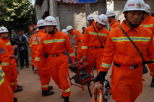 遼寧省公安消防總隊在實施救援