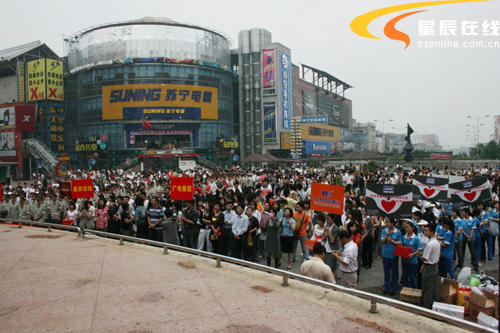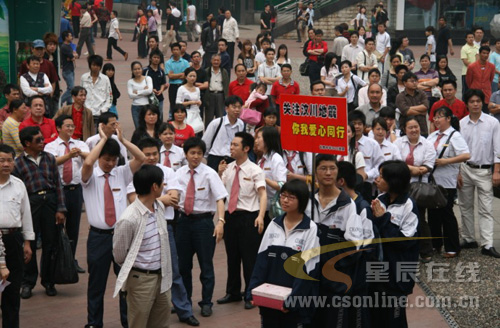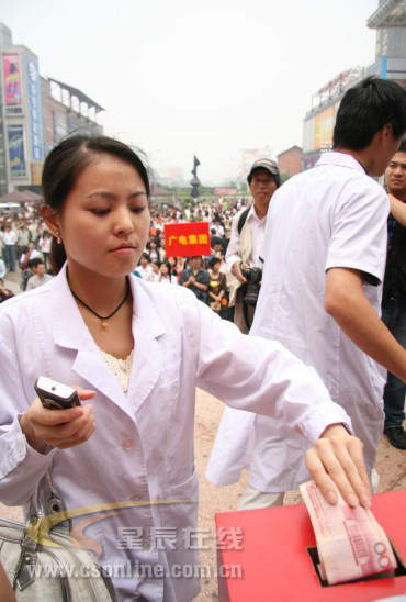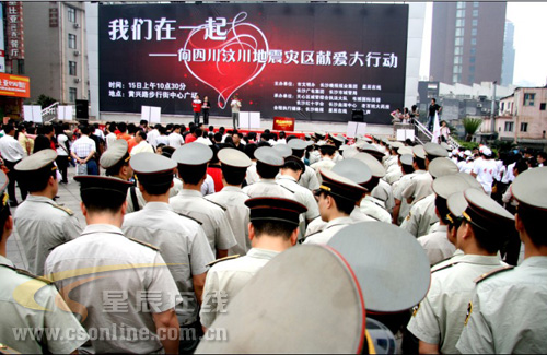四川汶川7.8級特大地震,牽動了整個神州,引起了廣大善良國人的熱切關注。今天上午10點30分,由長沙第一新聞門戶網站星辰在線、天心區城管執法大隊聯動長沙晚報、長沙廣電集團,攜手韋博國際英語、老百姓大藥房等富有愛心的企業聯合發起的“我們在一起——向四川汶川地震災區獻愛大行動”,在長沙市黃興路步行街濃情舉行。這也是湖南省首次由媒體發起倡議、企業全程參與的愛心捐獻活動。本次活動吸引了近萬市民前來捐獻錢物,為災區同胞獻血。長沙紅十字會辦公室主任黎躍剛記者,截止中午12點,已收到捐款261004.5元。