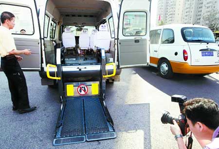今天上午,殘疾人專用出租車在公交公司亮相。 白繼開 攝