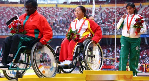 殘奧官方網站9月11日訊北京時間9月11日,北京殘奧會田徑比賽展開第四個比賽日的爭奪,今天上午在國家體育場進行的女子標槍F57-58級決賽中,F57級中國選手青素萍以22米71獲得1140分奪得金牌,F57級肯尼亞選手納庫米查-扎卡約以22米64獲得1137分摘得銀牌,銅牌被F58級墨西哥選手赫妮-貝拉斯科30米57獲得1037分獲得。