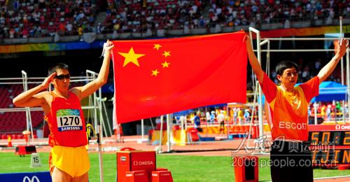 9月12日,在殘奧會田徑比賽男子F11三級跳遠比賽中,中國選手李端摘得金牌。
