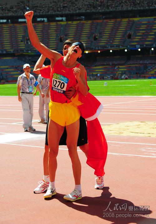 在殘奧會田徑比賽男子F11三級跳遠比賽中,中國選手李端摘得金牌。