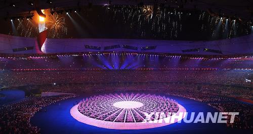 9月6日,北京2008年殘奧會開幕式在國家體育場“鳥巢”舉行。這是主火炬被點燃后的焰火表演。新華社記者廖宇杰攝