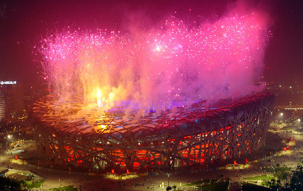 9月17日,北京2008年殘奧會閉幕式在國家體育場“鳥巢”舉行。這是閉幕式上的焰火表演。 新華社記者任勇攝