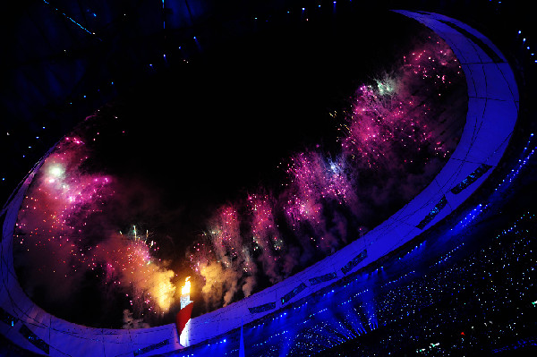 9月17日,北京2008年殘奧會閉幕式在國家體育場“鳥巢”舉行。這是閉幕式上的焰火表演。 新華社記者李紫恒攝