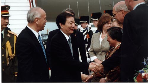 2000年7月,當時的中國國務院總理朱镕基訪問荷蘭。圖為朱镕基乘專機抵達阿姆斯特丹斯希普爾國際機場時的情景。