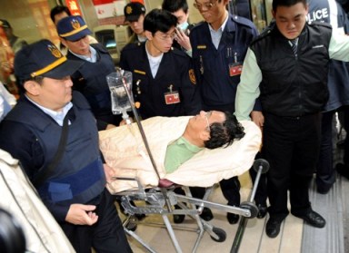 陳水扁禁食五天,16日晚間被戒護送往醫(yī)院治療,17日早上在警力戒護下轉(zhuǎn)院繼續(xù)治療。(“中央社”圖)