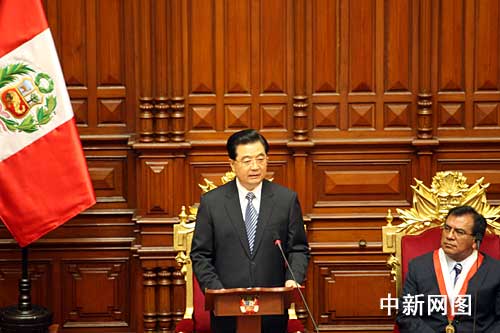 在秘魯最高立法機構所在地,胡錦濤發表了面向整個拉美地區的重要演講。演講吸引了200多位秘魯國會議員、政府官員和外國使節。