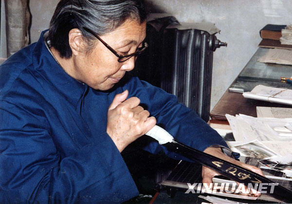 攝影部照片檔案資料工作人員用裁紙刀剪裁照片(攝于上個世紀80年代)。新華社發(fā)(資料照片)
