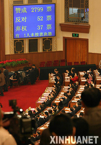 這是2007年3月16日,十屆全國人大五次會議表決通過《中華人民共和國物權(quán)法》。這部法律堅(jiān)持社會主義基本經(jīng)濟(jì)制度,平等保護(hù)國家、集體和私人的物權(quán),強(qiáng)化對國有財(cái)產(chǎn)的保護(hù),進(jìn)一步完善了中國特色社會主義物權(quán)制度。歷經(jīng)八次審議、創(chuàng)單部法律案審議次數(shù)之最的物權(quán)法,被稱作是民主立法、科學(xué)立法的典范。新華社發(fā)