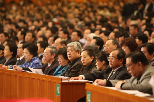 中國(guó)日?qǐng)?bào)網(wǎng)站環(huán)球在線消息:3月3日,中國(guó)人民政治協(xié)商會(huì)議第十一屆全國(guó)委員會(huì)第一次會(huì)議在北京人民大會(huì)堂開(kāi)幕。這是委員們?cè)谡J(rèn)真聽(tīng)會(huì)。