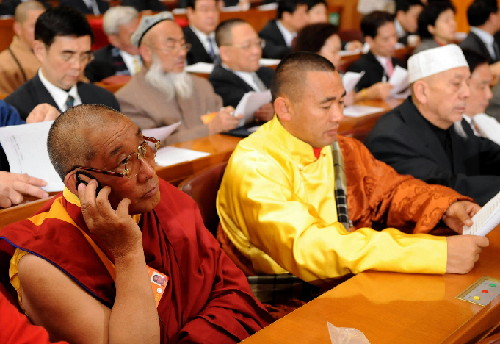 中國日報網站環球在線消息:3月3日,中國人民政治協商會議第十一屆全國委員會第一次會議在北京人民大會堂開幕。這是委員們在認真聽會。(圖片來源:新華社)