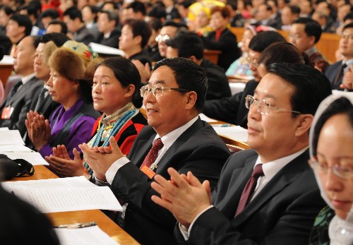 3月5日,第十一屆全國人民代表大會(huì)第一次會(huì)議在北京人民大會(huì)堂開幕。這是代表在熱烈鼓掌。 新華社記者李學(xué)仁攝