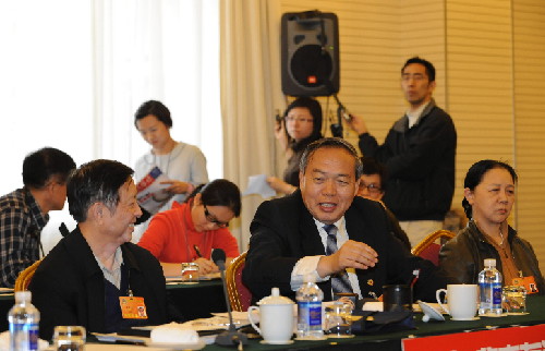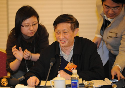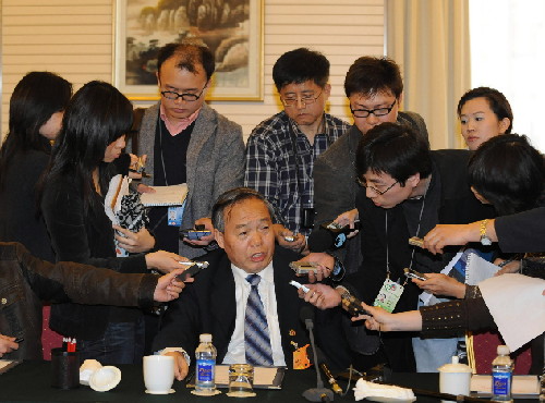 3月9日,政協中共界小組討論對媒體開放。這是鄭新立委員在回答記者提問。