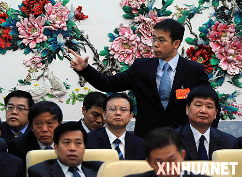 全國人大代表、河北秦皇島市代市長朱浩文(后立者)說,秦皇島市是沿海旅游城市,應借助奧運會帶來的機會,做大做強旅游業等傳統優勢產業,加速產業換代升級,落實“綠色奧運、科技奧運、人文奧運”的理念,發展“高科技、低能耗、無污染”產業,促進經濟由粗放擴張型向精細集約型轉變。新華社記者高潔攝