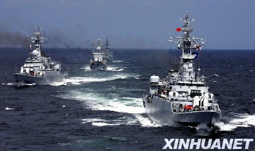 這是2005年9月25日,海軍艦艇部隊(duì)油料裝備檢驗(yàn)性演習(xí)在東海某海域拉開帷幕,聯(lián)合編隊(duì)在東海某海域航行。新華社發(fā)