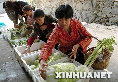 這是浙江省永嘉縣渠口鄉珠岸村村民提著菜籃子買菜(2007年4月13日攝)。新華社記者岳德亮、李亞彪報道