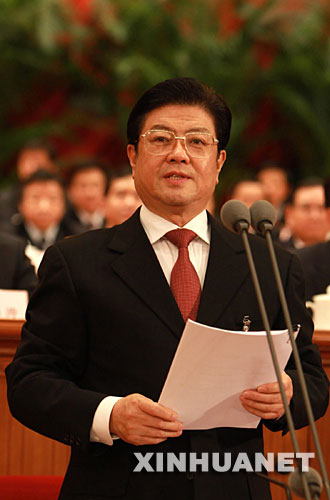 3月15日,十一屆全國人大一次會議在北京人民大會堂舉行第五次全體會議,選舉第十一屆全國人民代表大會常務(wù)委員會委員長、副委員長、秘書長;選舉第十一屆全國人民代表大會常務(wù)委員會委員;選舉中華人民共和國主席、副主席;選舉中華人民共和國中央軍事委員會主席。大會執(zhí)行主席、主席團(tuán)常務(wù)主席王兆國主持會議。新華社記者鞠鵬攝