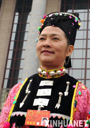 這是來自云南的全國人大代表巖三(布朗族)。 新華社記者楊宗友攝