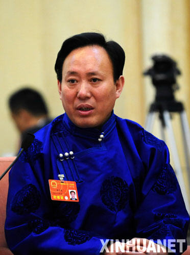 這是全國人大代表張守成(蒙古族)在小組會上發(fā)言。 新華社記者李濤攝