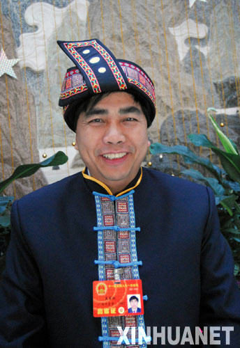 這是來自廣西的全國人大代表吳家權(quán)(仫佬族)。 新華社記者王建華攝