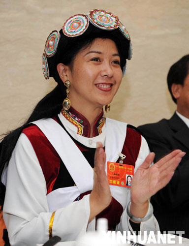 這是來自云南的全國人大代表楊勁松(納西族)在小組會上。 新華社記者楊宗友攝