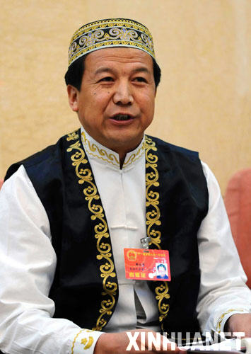 這是來自青海的全國人大代表韓永東(撒拉族)在小組會上發言。 新華社記者李濤攝