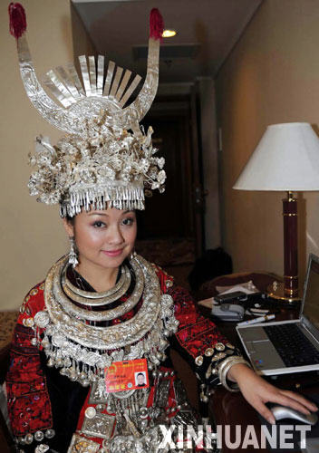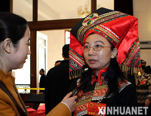 這是來自貴州的全國人大代表雷阿幼朵(苗族)。 新華社記者王建華攝