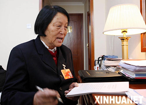 這是來自山西的全國人大代表申紀蘭(漢族)在整理自己將提出的建議。 新華社記者劉衛兵攝