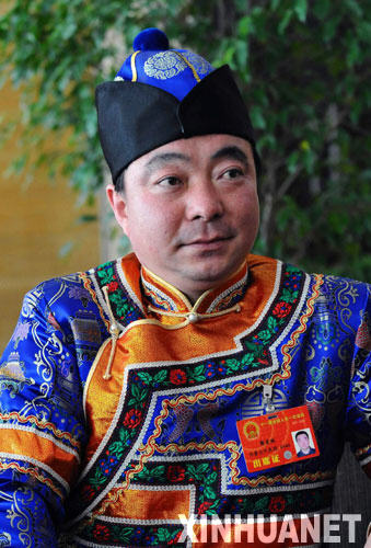 這是來自內蒙古的全國人大代表郭宏林(達斡爾族)。 新華社記者李濤攝