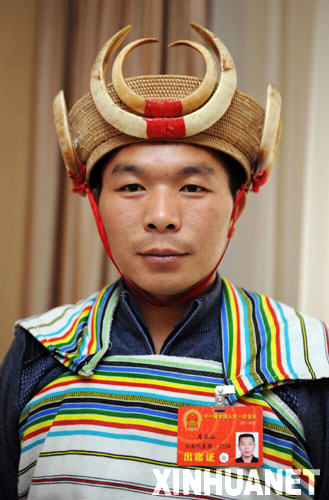 這是來自云南的全國人大代表馬正山(獨龍族)。 新華社記者楊宗友攝