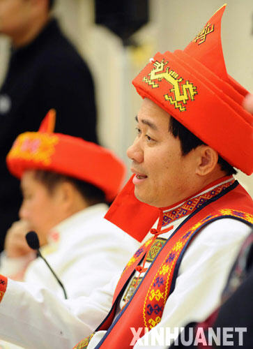 這是來自云南的全國人大代表侯新華(傈僳族)。 新華社記者楊宗友攝