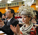 迎“三八”節聯歡 男委員裝扮成小天鵝