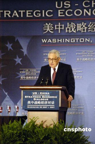 當地時間5月22日上午,第二次中美戰略經濟對話在美國華盛頓開幕,中國國務院副總理吳儀和美國財政部長保爾森作為兩國元首特別代表,共同主持對話會。中美兩國外交關系的奠基人之一,尼克松時代的美國國務卿基辛格博士出席對話開幕式并致詞。